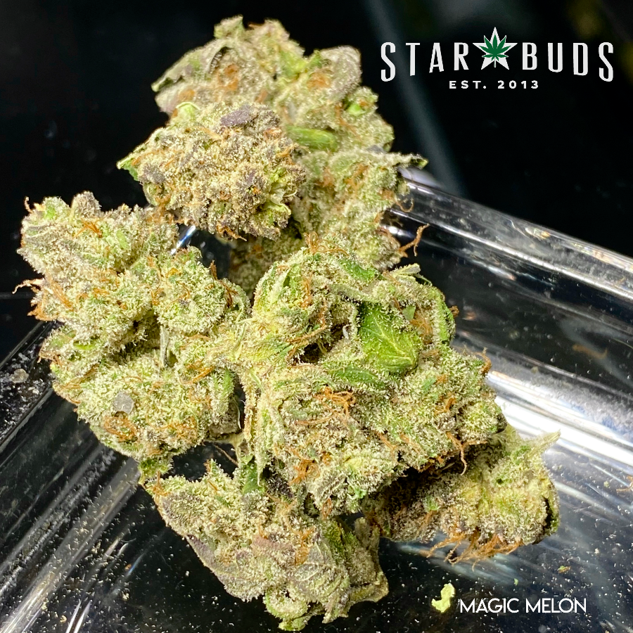 The effects of Magic Melon are reported to produce a euphoric and uplifting cerebral high that tends to leave the user with motivation creative thoughts and the giggles. Love a great fruity flavor and a well-balanced high. Magic Melon is an indica dominant hybrid 70 indica30 sativa strain created as a cross between the insanely delicious and fragrant Lavender X Bubble Gum strains.